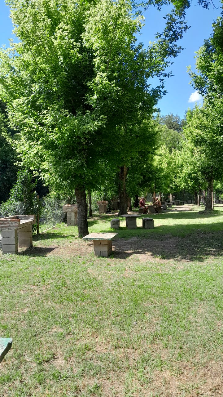 Asadores, mesas y bancos distribuidos en distintos sectores